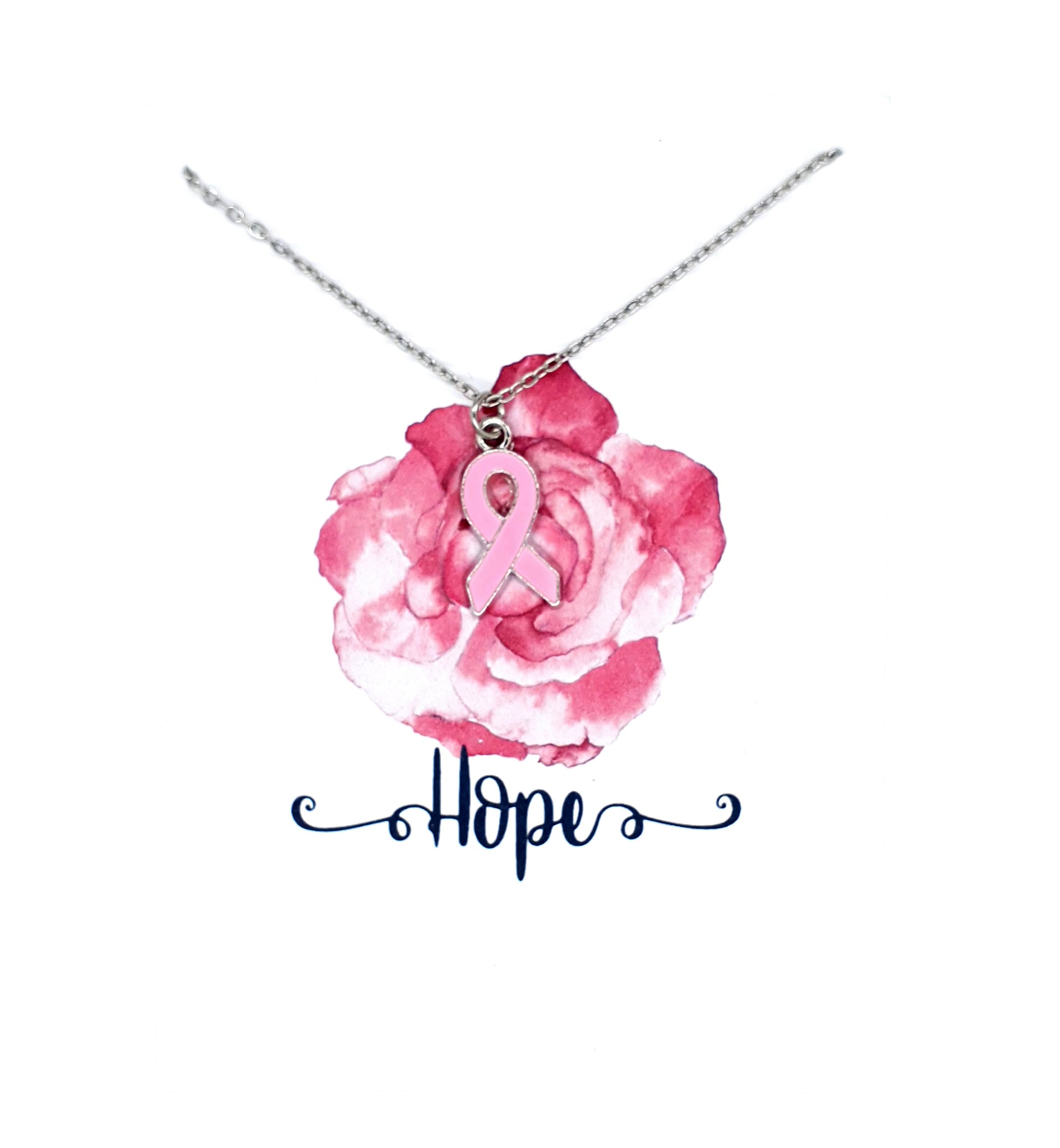Pink Ribbon Awareness Necklace on Rose Hope Card