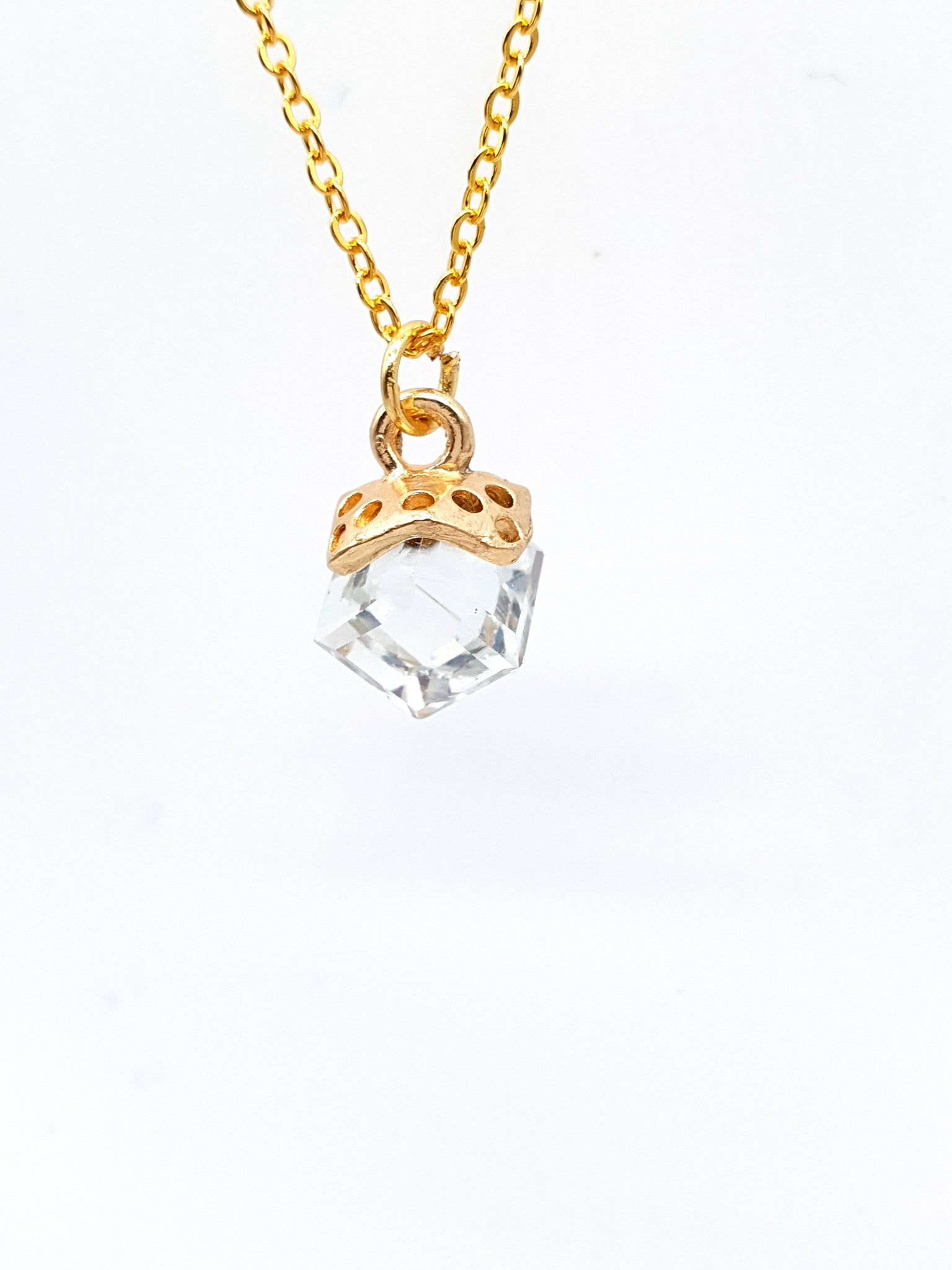 - Simple and sophisticated Crystal Cube Pendant on a gold stainless steel chain