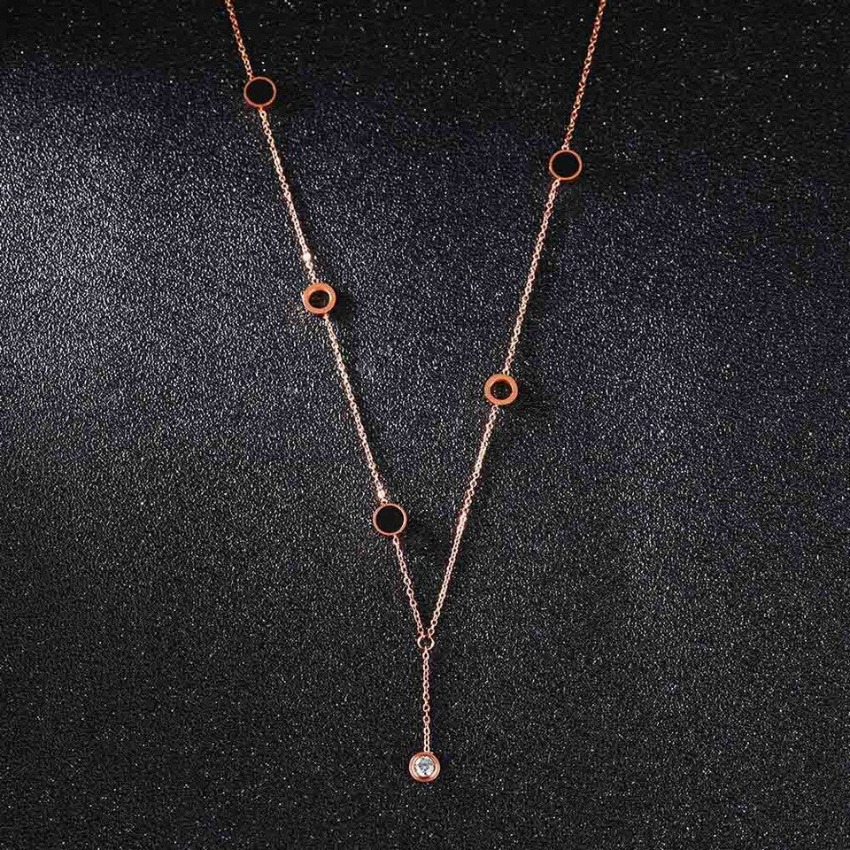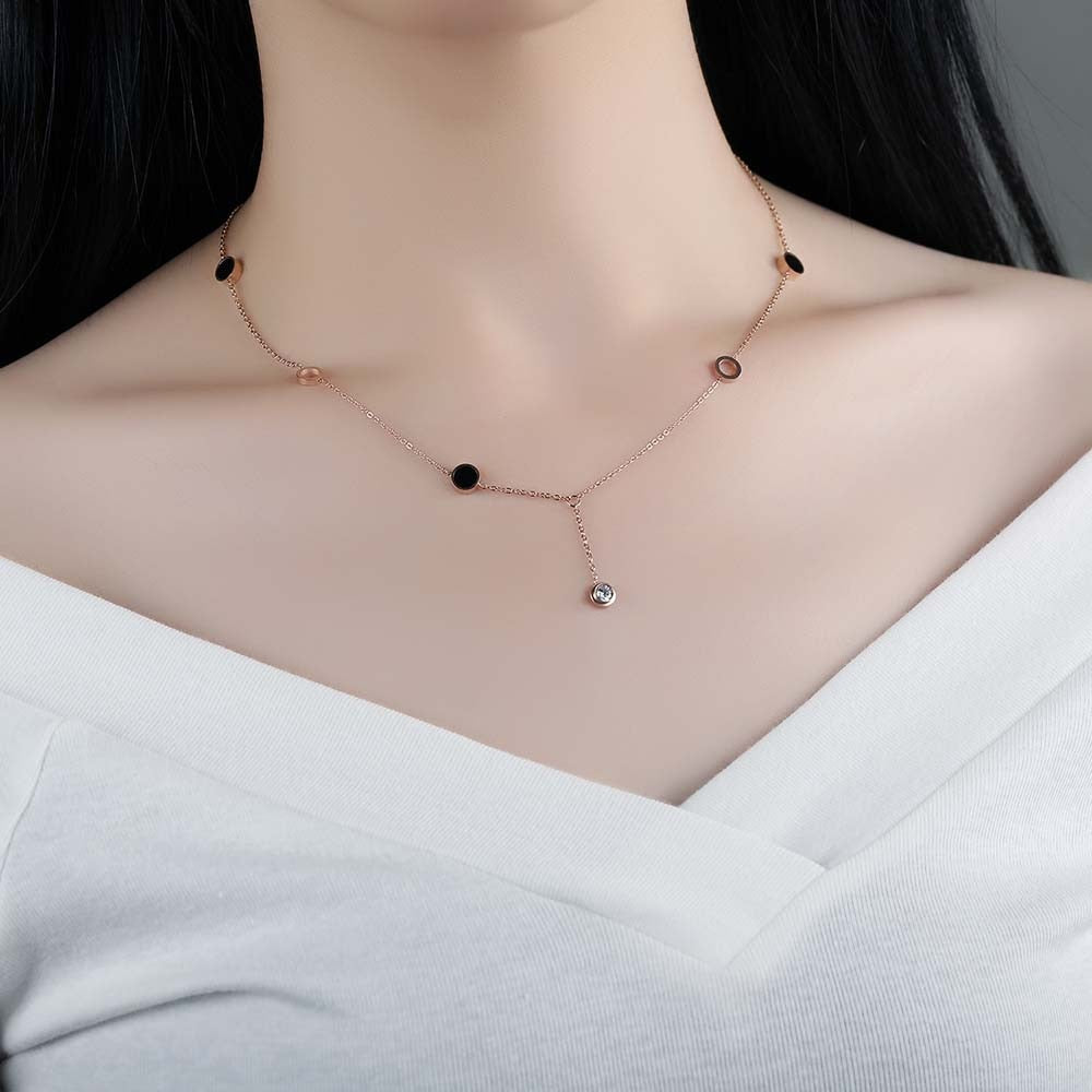 Black Disk Necklace with Cubic Zirconia